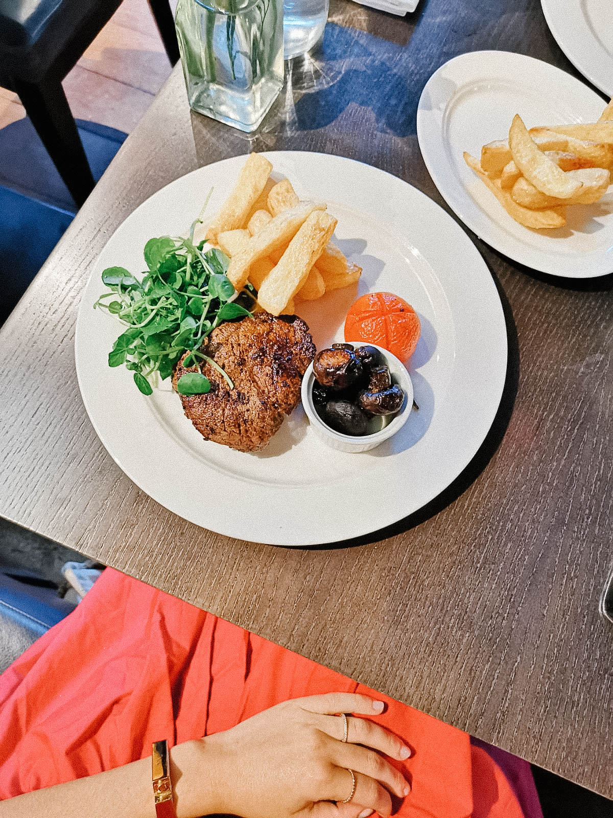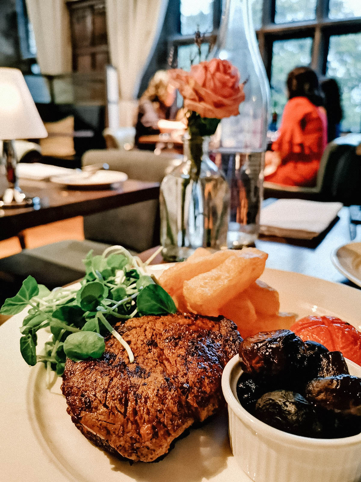 The food was so delicious the only little down side is that it took quite a while to be served but I have to admit they were super busy so considering it was not too bad but I just mean you can’t come here and be in a rush it’s nice and important to just sit down relax and take your time, you digest better if you eat slower on top of that. I had Foie Gras as a starter I know it’s a bit controversial as a lot of people disagree with Foie Gras and I totally understand but it tastes too good to pass … The main was a rare cooked steak with lovely chunky chips and those yummy mushrooms honestly the meat melted in my mouth it was a really good piece. A lot of their food and drinks are form local producers which I totally love. The desert was the best (I have a sweet tooth) it was lavender and strawberries with a hint of rose and omg I was quite full before it arrived but I ate it in seconds …